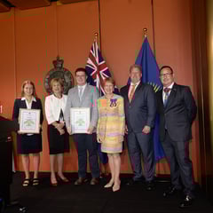 From left to right: David Harvey, Vice President; mother of Jackson;Hon Helen Dalton MP Member for Murray; Jackson Bialobrzeski and Her Excellency the Hon Margaret Beazley AC KC, Governor of NSW.
